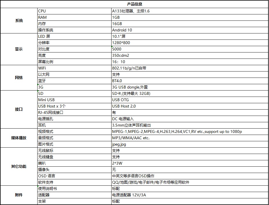 LED 屏 | 10.1"屏 |