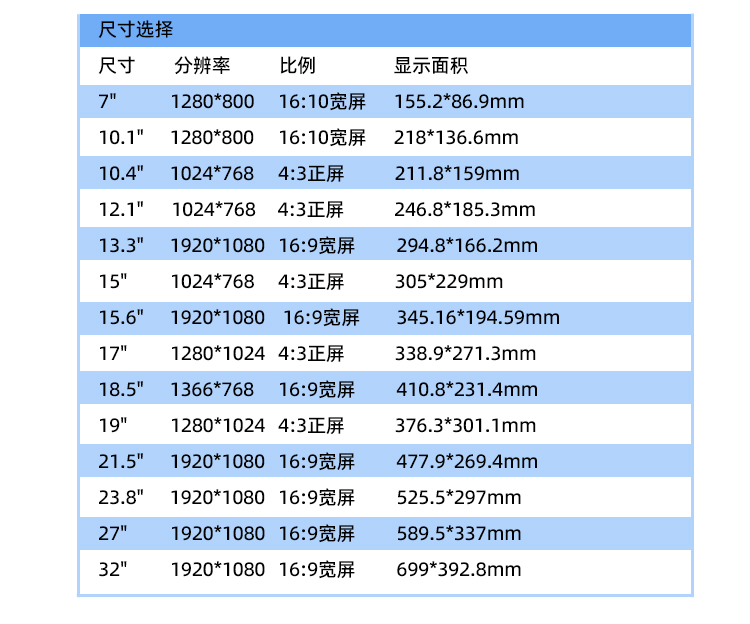 顯示亮度 | 350cd/m2(可定制400cd/m2以上高亮度) |
