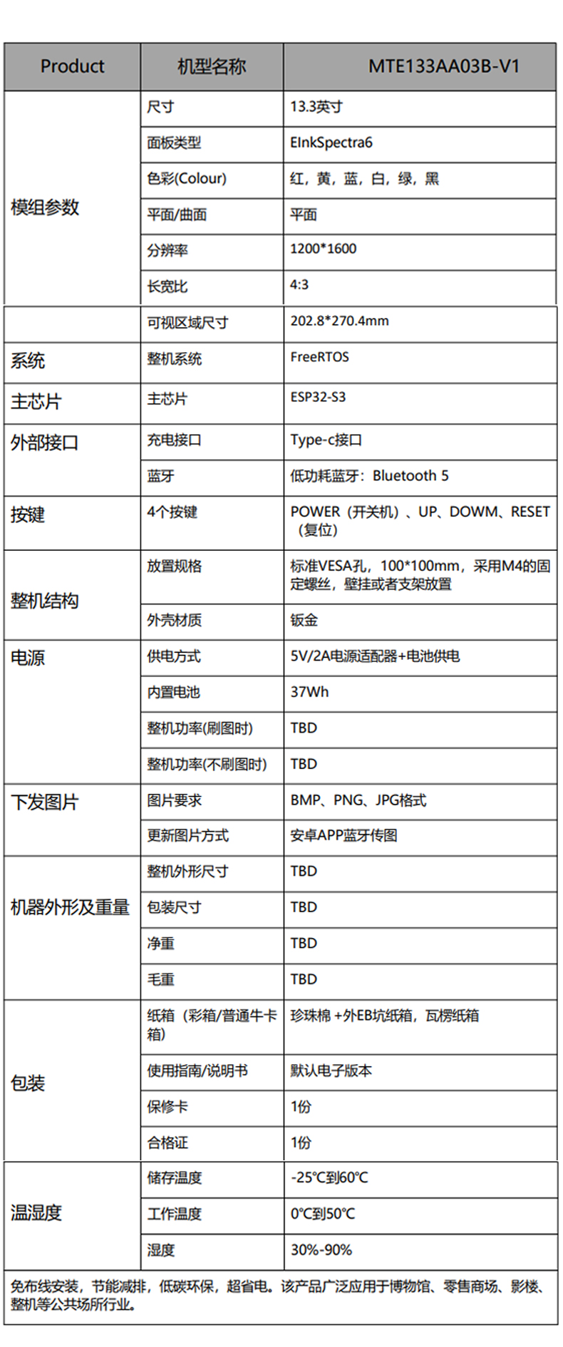 13.3寸電子紙墨水屏相框全彩低功耗1200*1600藍牙